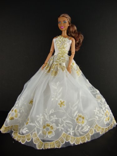 You are looking for Amazing Bright White Ball Gown with Gold Floral Lace Accents Made to Fit the Barbie Doll with help save price? We now have one of a kind deals for Amazing Bright White Ball Gown with Gold Floral Lace Accents Made to Fit the Barbie Doll. It is incredibly low cost at this time.